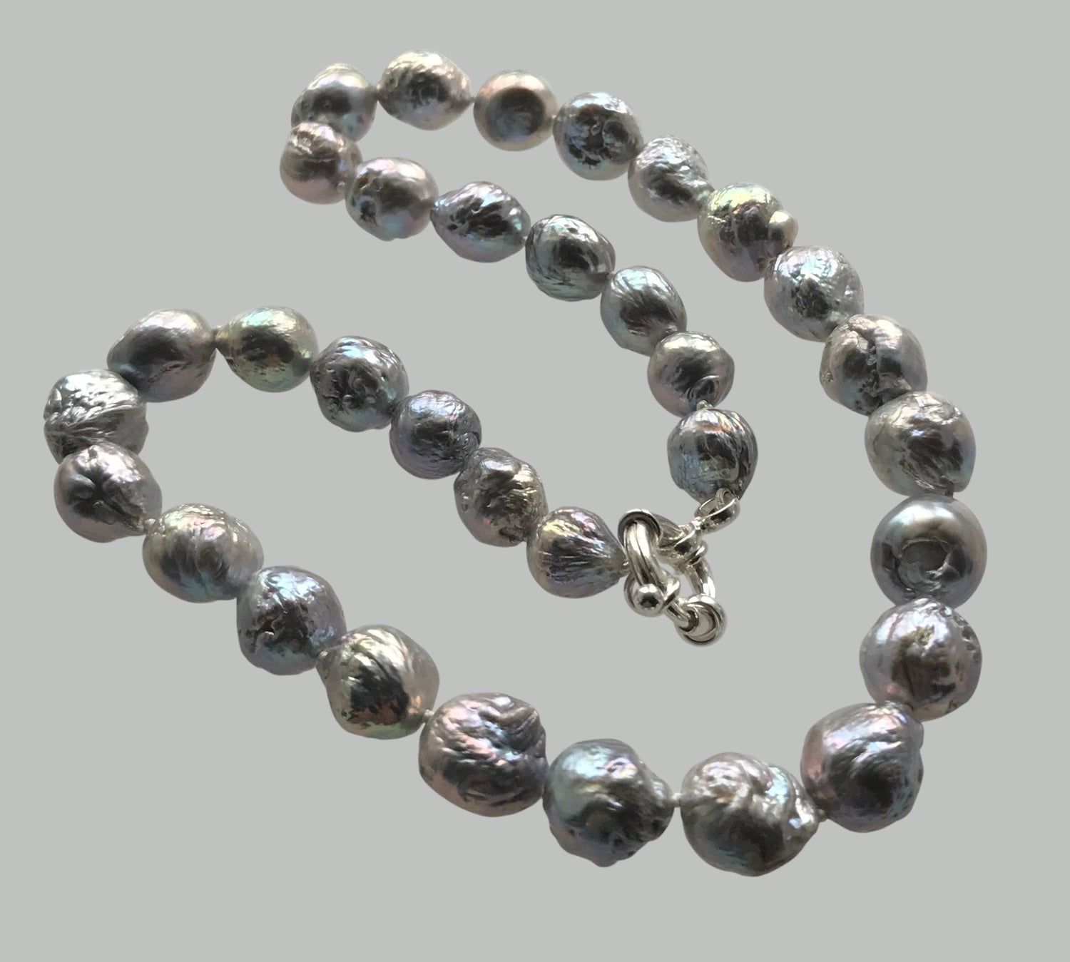 17" WHITE BAROQUE FRESHWATER PEARL NECKLACE &925 SILVER